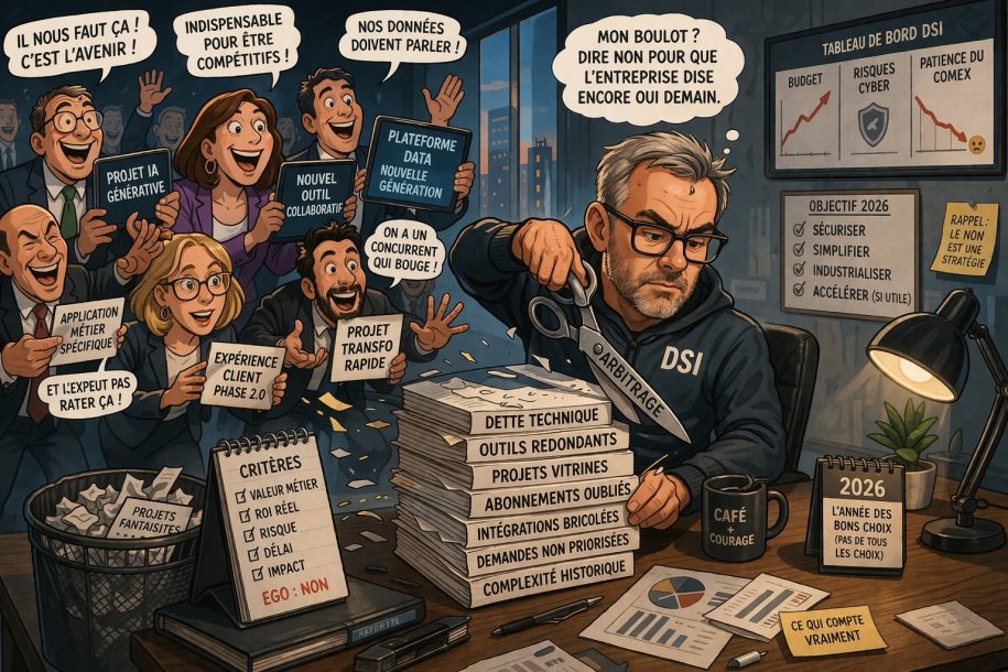 En 2026, la DSI n’est donc plus jugée d’abord sur sa capacité à lancer. Elle l’est sur sa capacité à trier, à tenir, à renoncer, à concentrer l’effort là où il compte vraiment. C’est moins séduisant qu’un discours sur l’innovation permanente. C’est pourtant la seule manière sérieuse de conduire un système d’information dans un monde où tout coûte plus cher, où tout est plus exposé, et où l’erreur de priorité finit toujours par se payer deux fois.